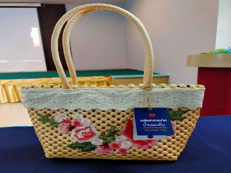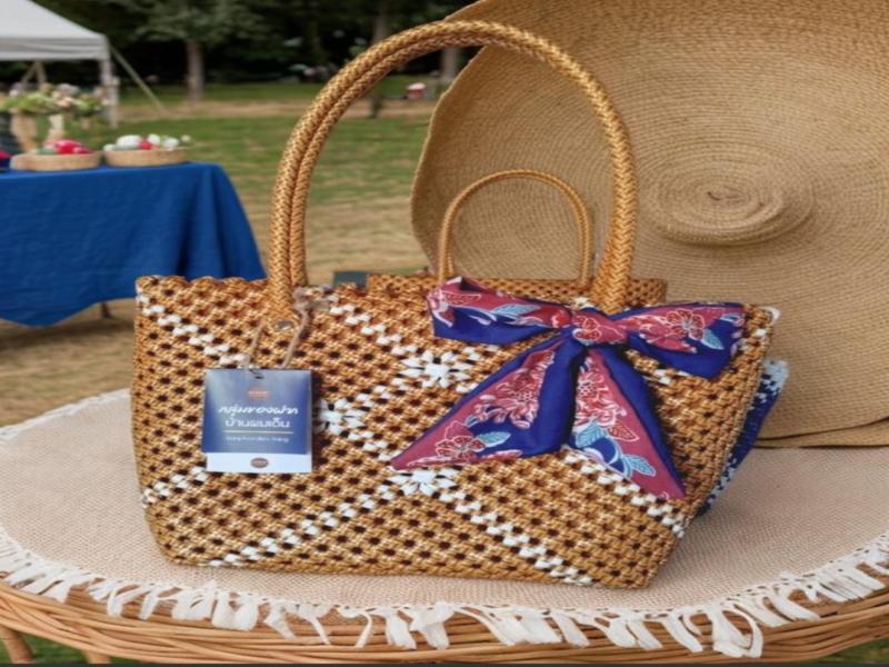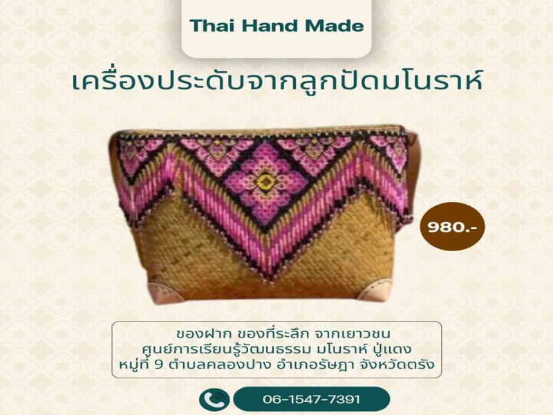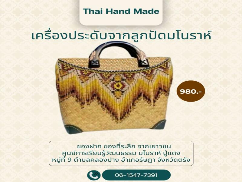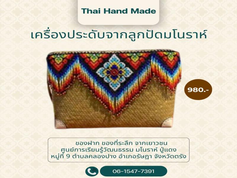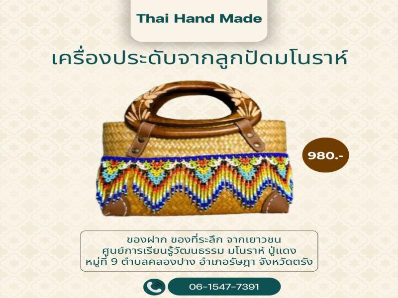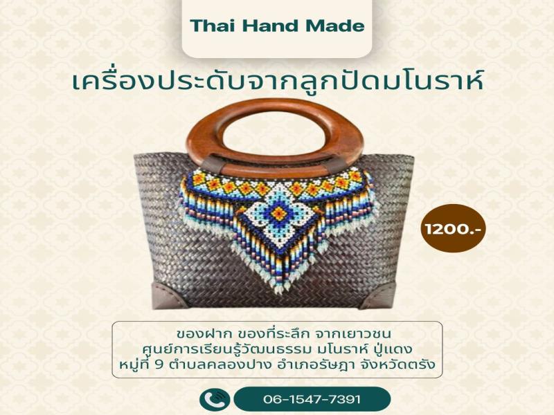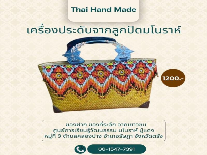 กระเป๋าสานประดับลูกปัดมโนราห์