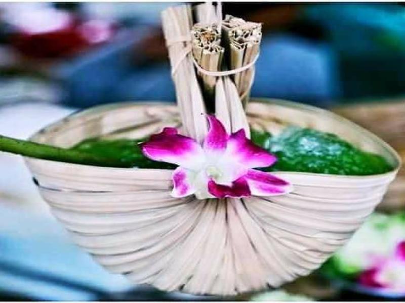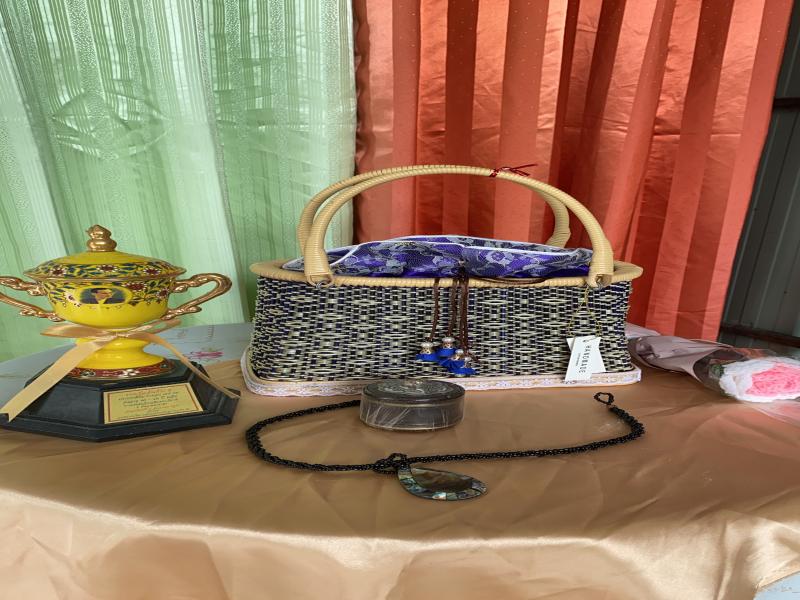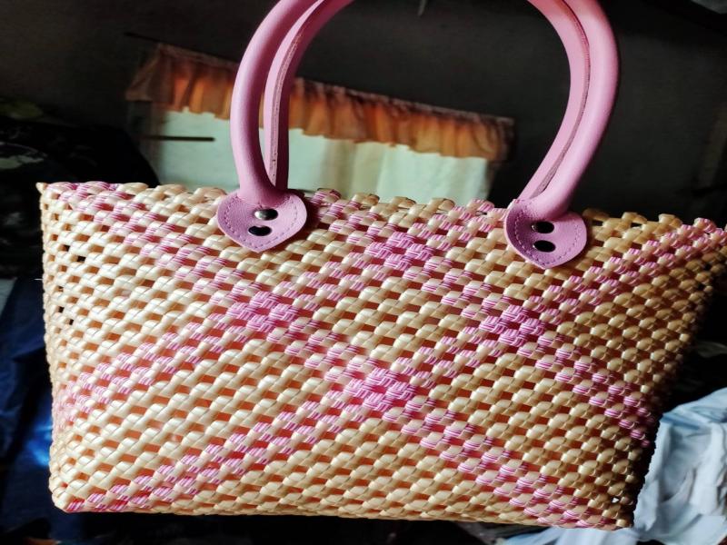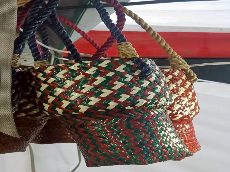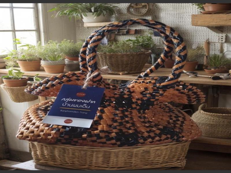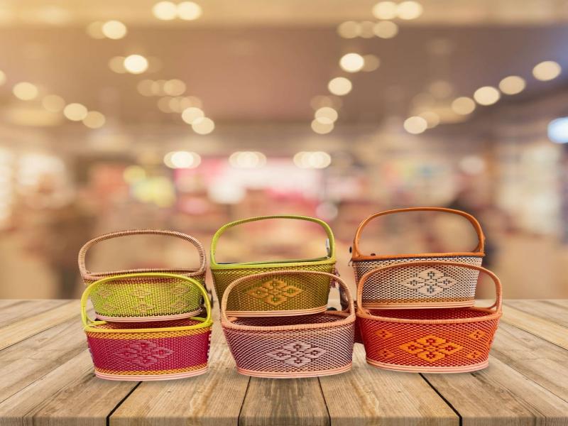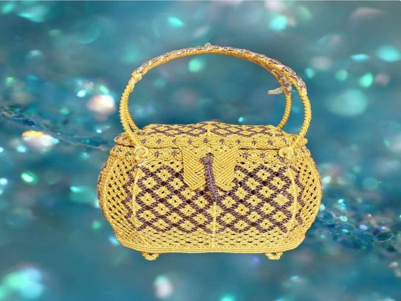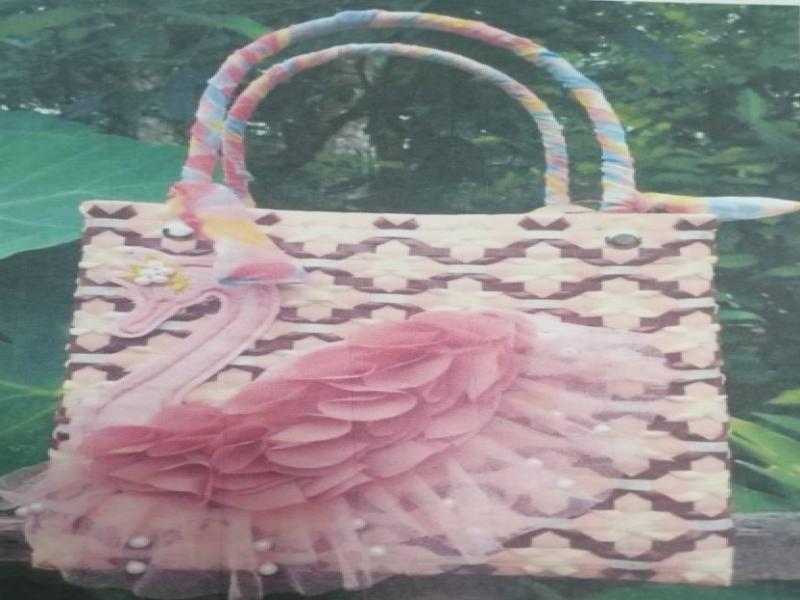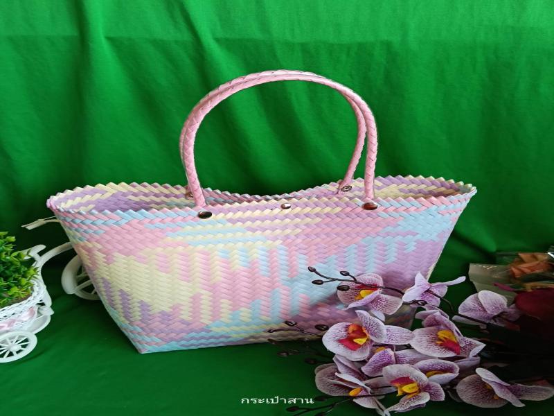 กระเป๋าสานประดับลูกปัดมโนราห์
